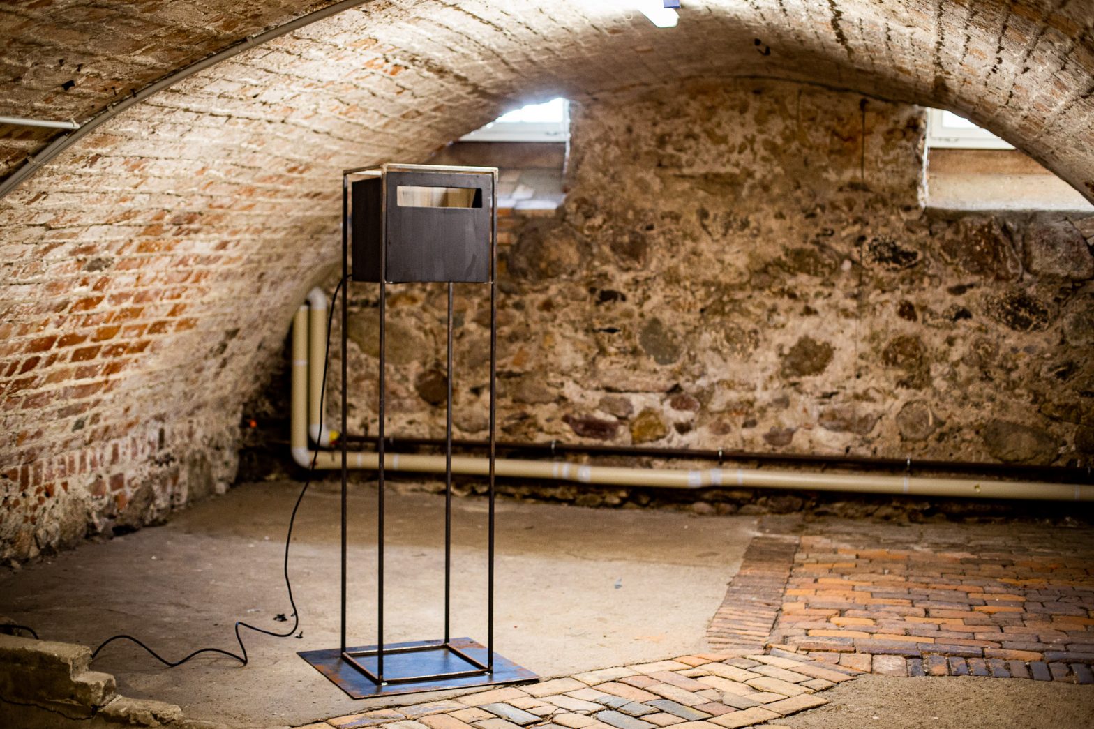 Unsere Holobox wurde im Rahmen des Projekts “100 Objekte Oderbruch” als Ausstellungsobjekt entwickelt. Sie ermöglicht es, Objekte als Hologramm-Illusion zu zeigen, sie mit weiteren Informationen zu versehen und eine Audiospur zur weiteren Erklärung abzuspielen. Die Anwendungen sind vielfältig: so können digitale Inhalte in einem Museum gezeigt werden, ohne einen schnöden Monitor aufzustellen. Dabei ist das Prinzip der Holobox denkbar einfach: auf dem Boden einer Holzkiste befindet sich ein Monitor, welcher sein Bild über einen schräg stehenden und halbdurchsichtigen Spiegel auf das Auge der/des Betrachtenden lenkt.
