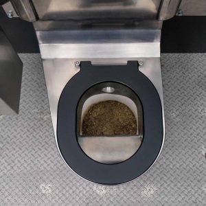 Dank Urinableitung mittels Teekanneneffekt im Toilettensitz, Einstreu aus Hanfgranulat und elektrischer Abluft ist eine Wasserspülung obsolet. Separat gesammelt werden Fest und Flüssig auf Deutschlands erster Recyclinganlage von Krankheitserregern und Arzneirückständen befreit und zu hochwertigem Humusdünger aufbereitet. Dieser wird auf einem Schorfheider Versuchsacker ausgebracht, wo die Finizio GmbH seit 2020 einen 10-jährigen Feldversuch unternimmt, der das dicke Brett der Legalisierung zu bohren wagt. Die Libre DIN ist mehr als ein Design. Sie ist Schnittstelle zwischen Anfang und Ende im Zyklus des (öffentlichen) Lebens.