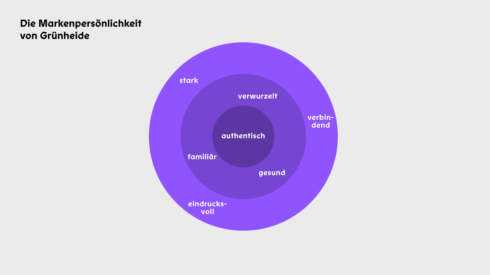 Für mich galt es zu beweisen, dass Grünheide viel mehr ist als nur die „Tesla-Gemeinde“. Was macht also den wahren Charakter von Grünheide aus? In einem Markenworkshop mit einigen Mitarbeitern des Rathauses stellte sich heraus, dass Grünheide besonders eins ist: authentisch – das zeigt sich in den Werten familiär, verwurzelt, verbindend, stark oder gesund.