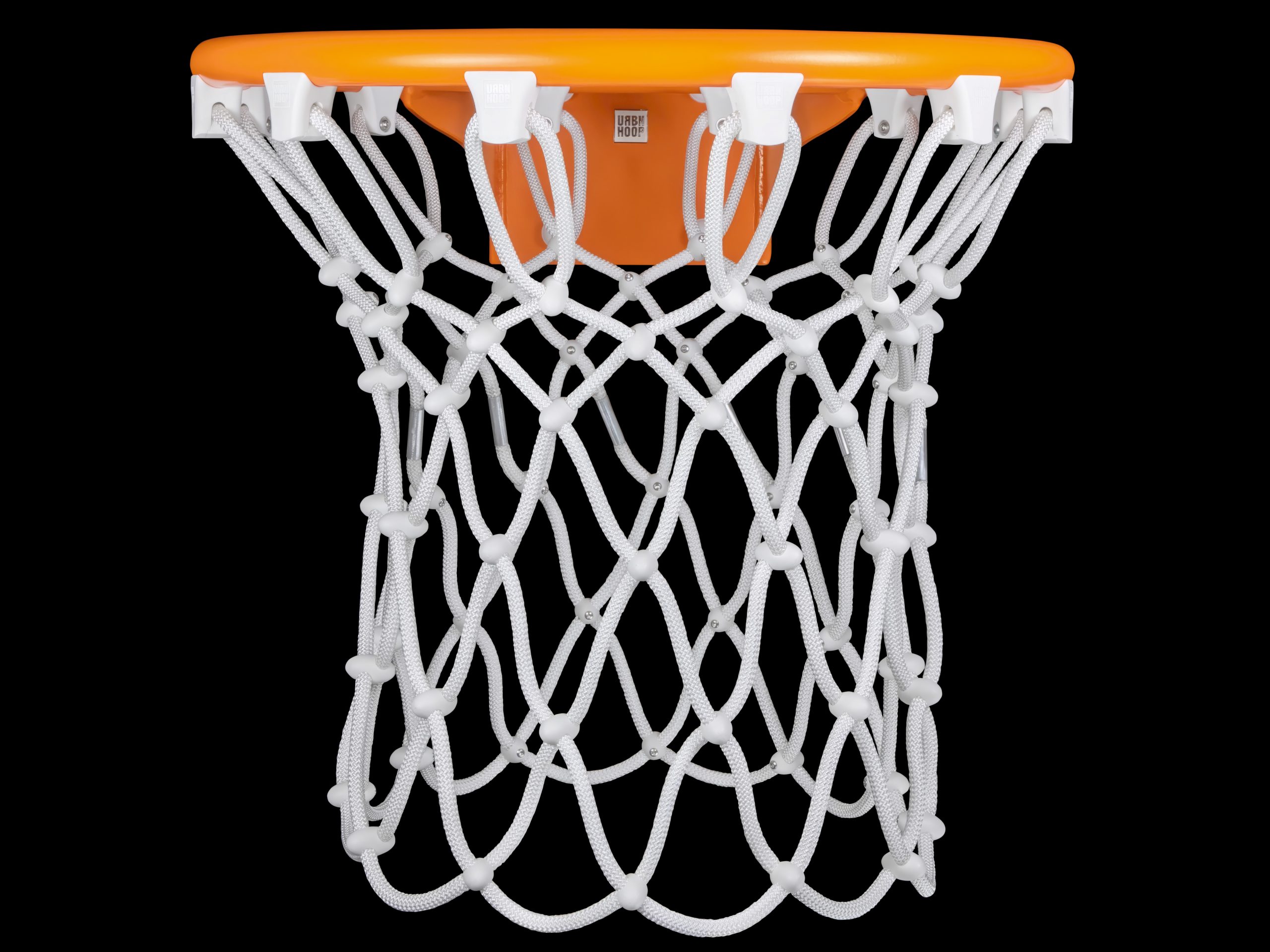 Der URBN HOOP® wurde in Brandenburg entwickelt, um Streetball neu zu denken – als Verschmelzung von Ingenieurskunst, Design und Kultur. Herkömmliche Netze reißen, verhaken sich oder fehlen ganz. Der URBN HOOP® löst dieses Problem mit einem patentangemeldeten, reibungsfreien Netzsystem aus eigens entwickelten Seilkonnektoren und Ellipsenknoten. Das Paracord-Netz wird präzise geführt, verschraubt und erzeugt den typischen Swish-Moment – klar, kraftvoll und dauerhaft spürbar.